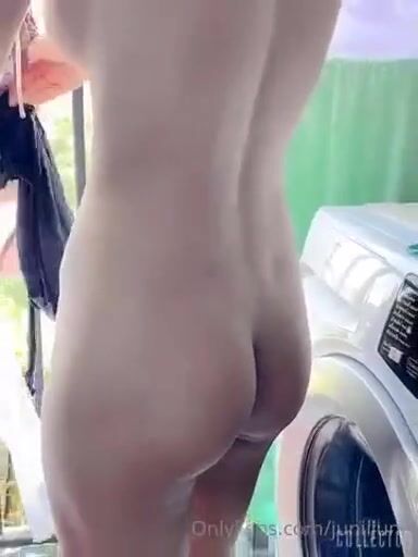 [国产]偷拍女友全裸在户外阳台晾衣服